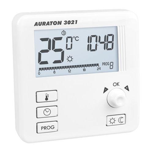Проводной регулятор температуры. Регулятор оснащен дисплей с подсветкой, обеспечивающий управление 9 независимо настраиваемыми программами. Позволяет установить 3 режима температур –день, ночь, мороз.