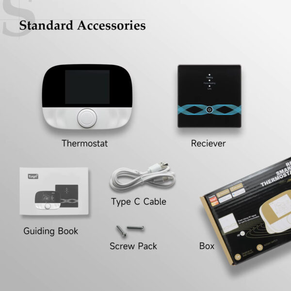 Комплектация | термостат | приемник | крепеж | USB кабель Type-C |