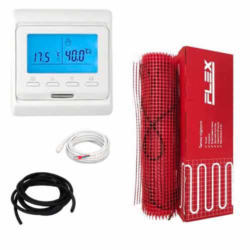 Комплектация | Нагревательный двухжильный мат | Терморегулятор программируемый | Защитная гофрированная трубка для датчика температуры | Гарантийный талон |