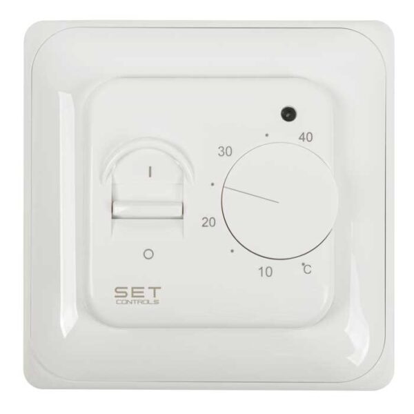 Терморегулятор с ручным управлением. Позволяет задать и поддерживать требуемую температуру нагрева пола. Контроль температуры пола осуществляется благодаря выносному датчику температуры пола (в комплекте). Оснащен тумблером вкл/выкл. Устанавливается в подрозетник формата 65х45 или 65х60.