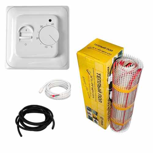 Комплектация | Нагревательный двухжильный мат | Терморегулятор механический | Защитная гофрированная трубка для датчика температуры | Гарантийный талон |