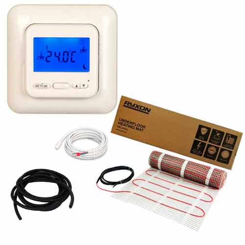 Комплектация | Нагревательный двухжильный мат |Терморегулятор программируемый T4| Защитная гофрированная трубка для датчика температуры | Гарантийный талон |