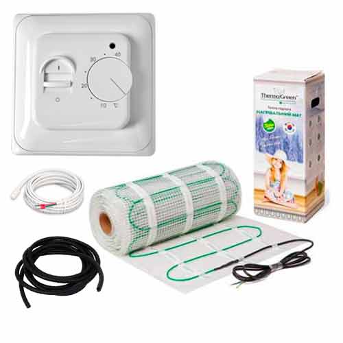 Комплектация | Нагревательный двухжильный мат | Терморегулятор механический | Защитная гофрированная трубка для датчика температуры | Гарантийный талон |