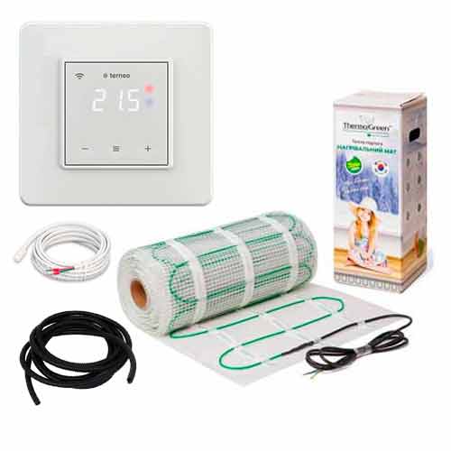Комплектация | Нагревательный двухжильный мат | Терморегулятор программируемый WiFi Terneo SX| Защитная гофрированная трубка для датчика температуры | Гарантийный талон |
