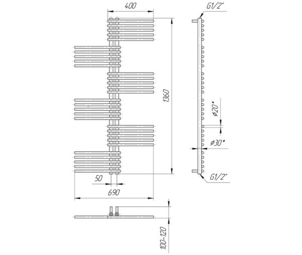 Водяной полотенцесушитель из нержавеющей стали Mario Премиум Симфония