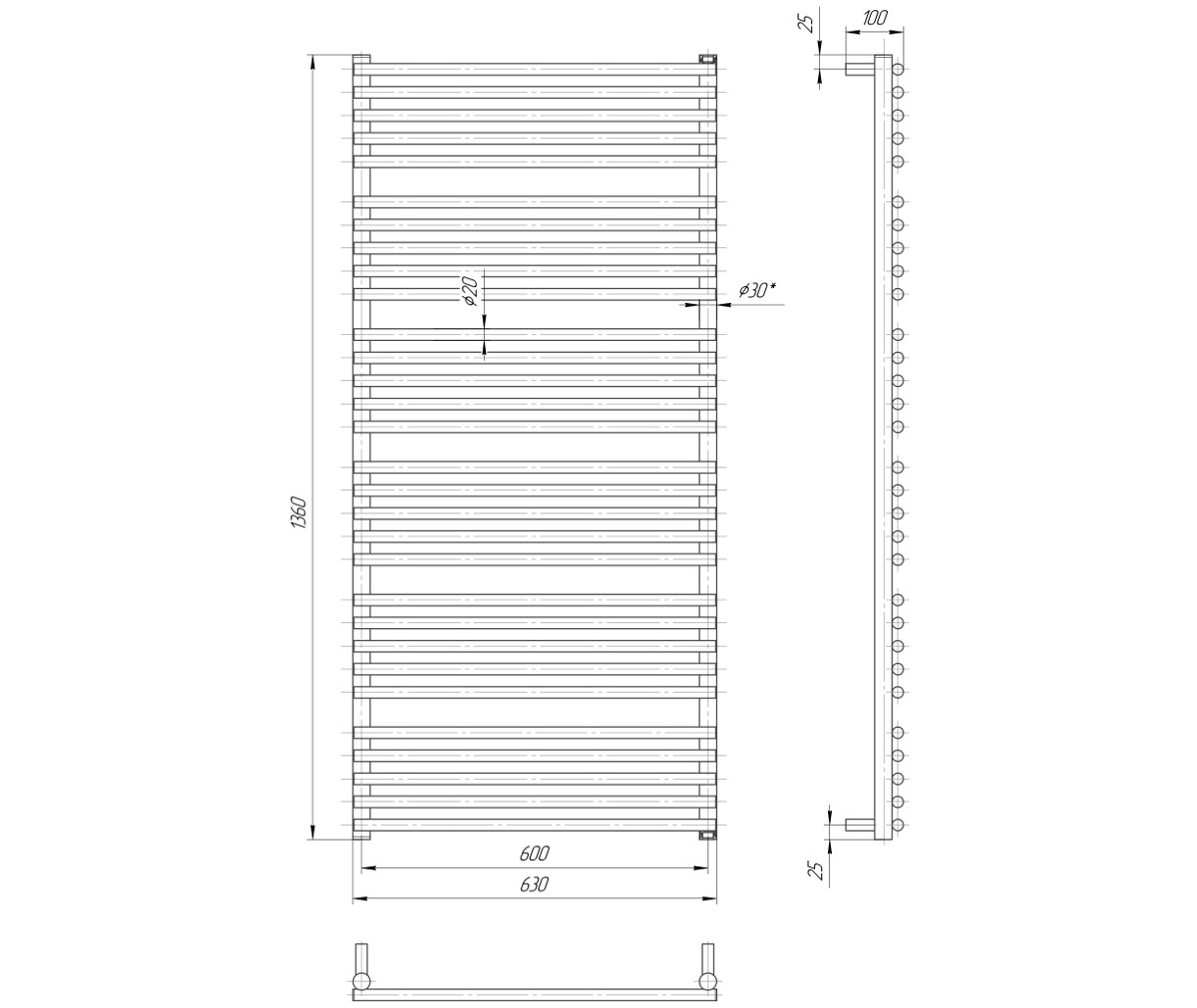 Полотенцесушитель Премиум Турин производственного предприятия Mario изготовлен из нержавеющей стали АІSI 304 может быть оборудован электрическим теном.