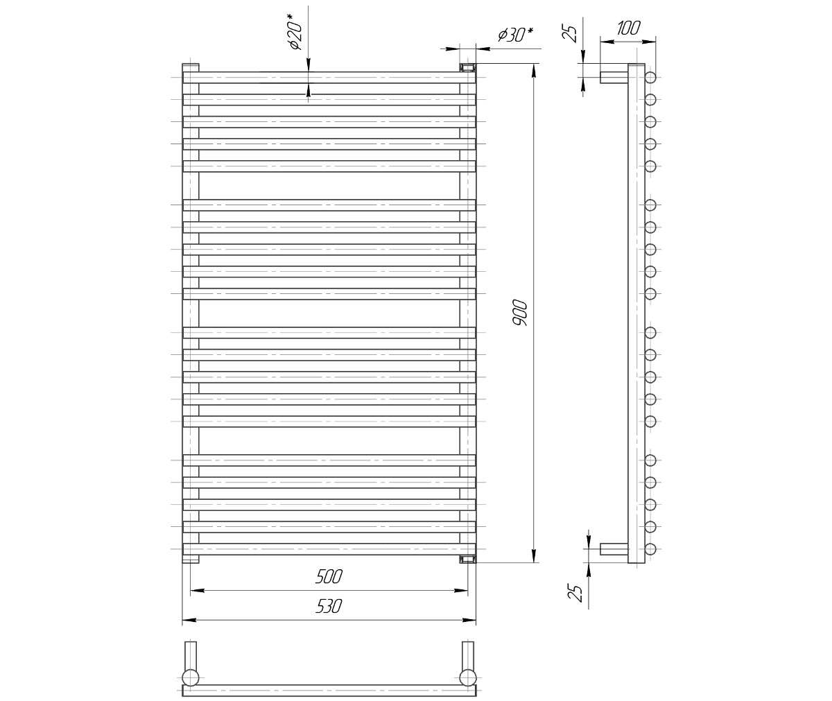 Водяной полотенцесушитель из нержавеющей стали Mario Премиум Турин