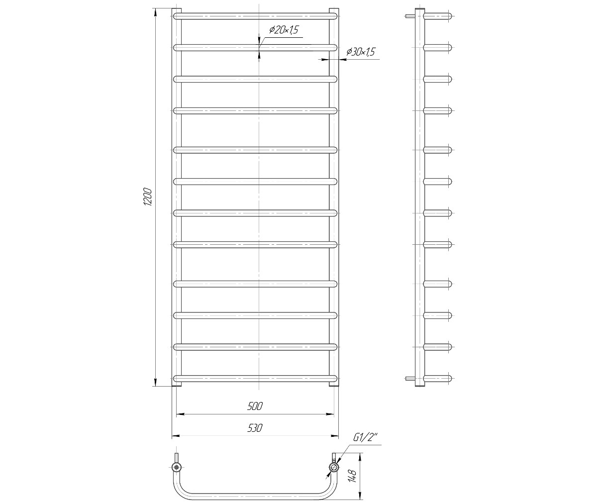 Полотенцесушитель Стандарт производственного предприятия Mario изготовлен из нержавеющей стали АІSI 304 может быть оборудован электрическим теном.