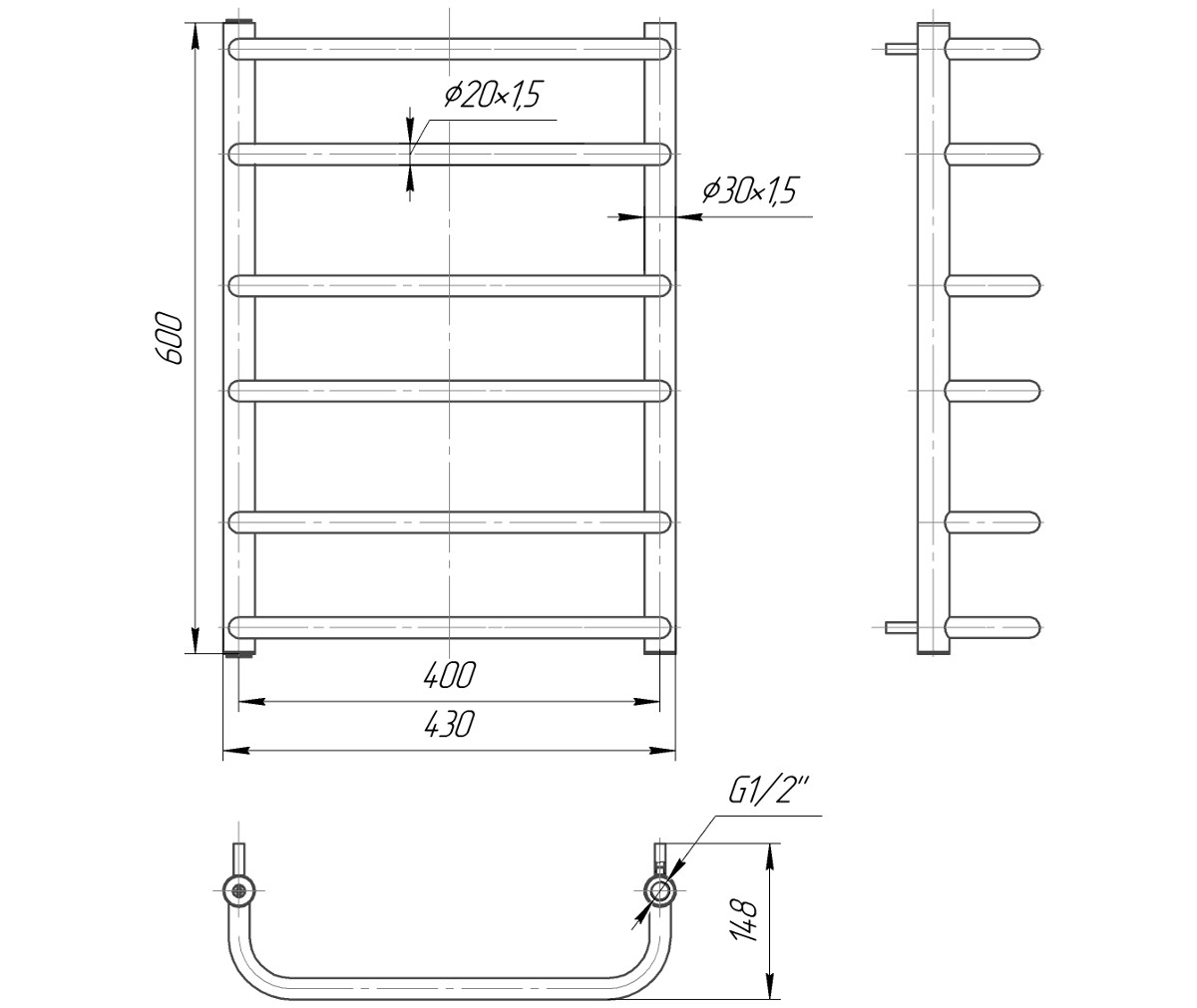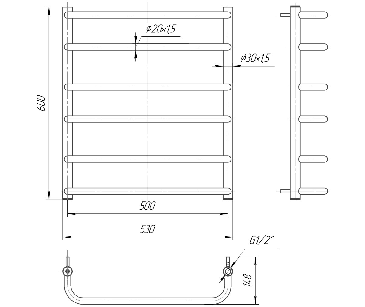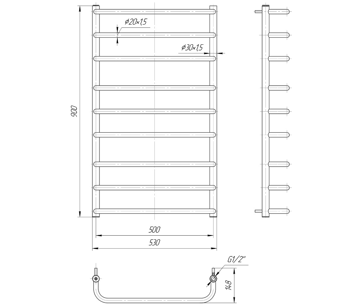 Водяной полотенцесушитель из нержавеющей стали Mario Стандарт