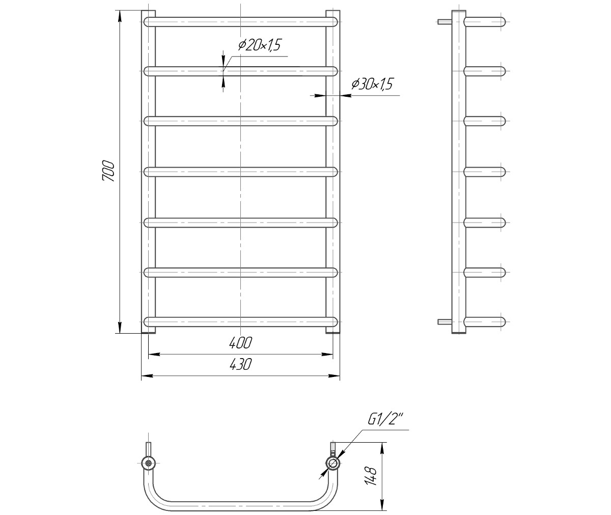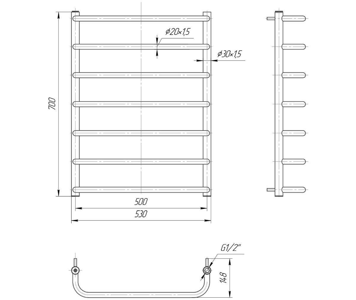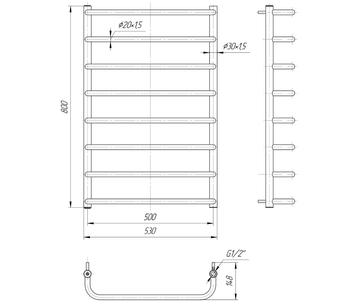 Водяной полотенцесушитель из нержавеющей стали Mario Стандарт