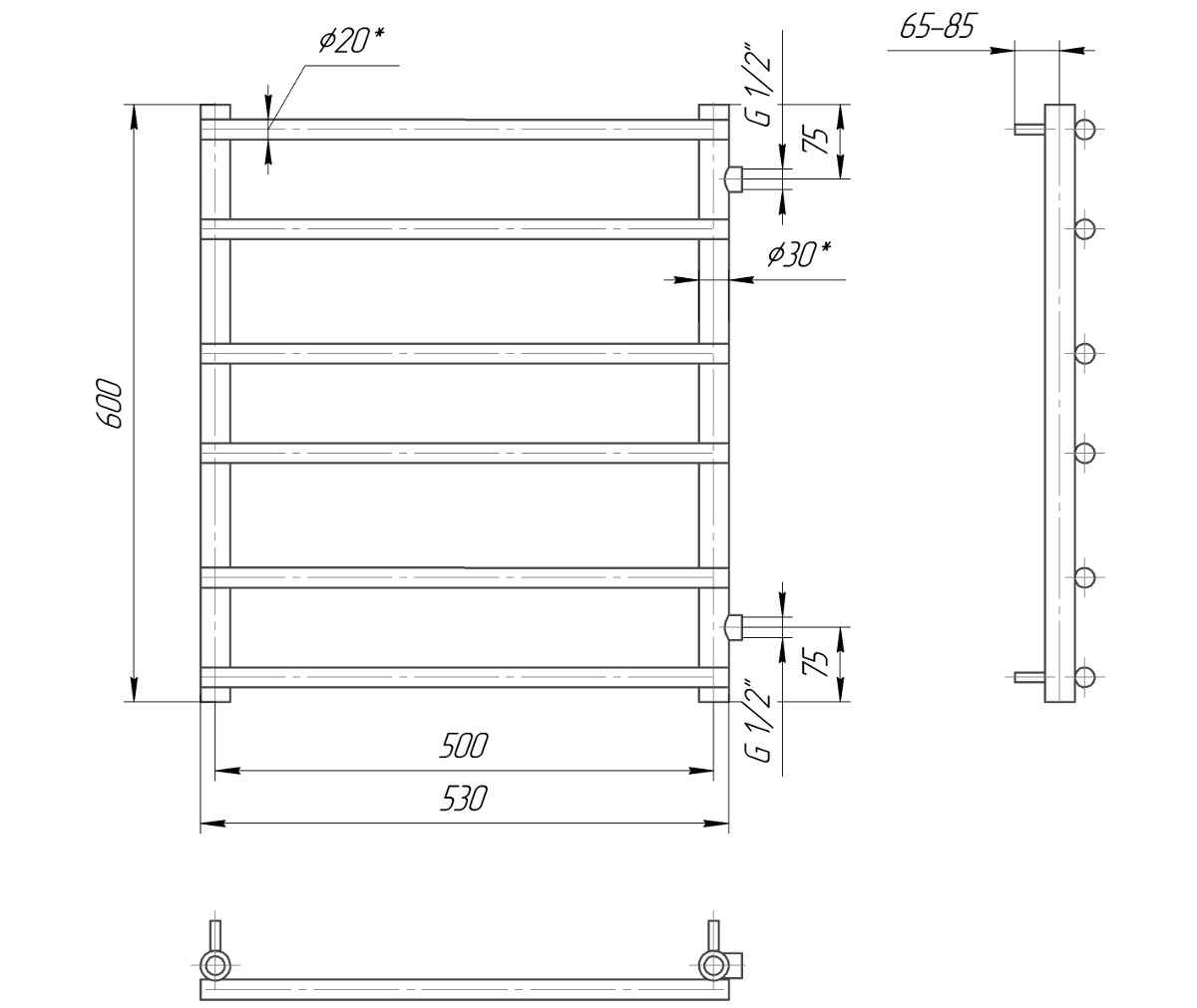 Водяной полотенцесушитель из нержавеющей стали Mario Турин БП 1/2″