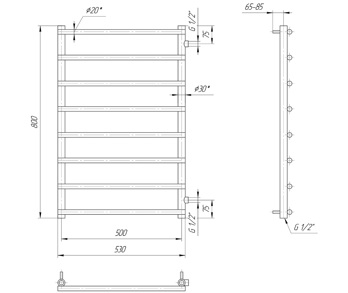 Полотенцесушитель Турин БП 1/2″ производственного предприятия Mario изготовлен из нержавеющей стали АІSI 304 может быть оборудован электрическим теном.