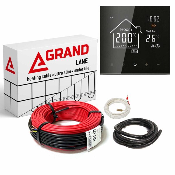 Комплект кабель Grand Lane GL-cab 18 + сенсорный программируемый WiFi терморегулятор. Комплект теплого пола в слой плиточного клея или в стяжку.