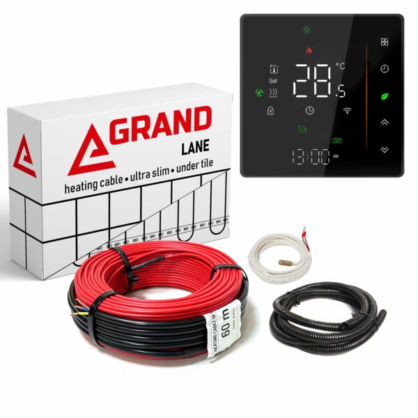 Комплект кабель Grand Lane GL-cab 18 + сенсорный программируемый WiFi терморегулятор. Комплект теплого пола в слой плиточного клея или в стяжку.