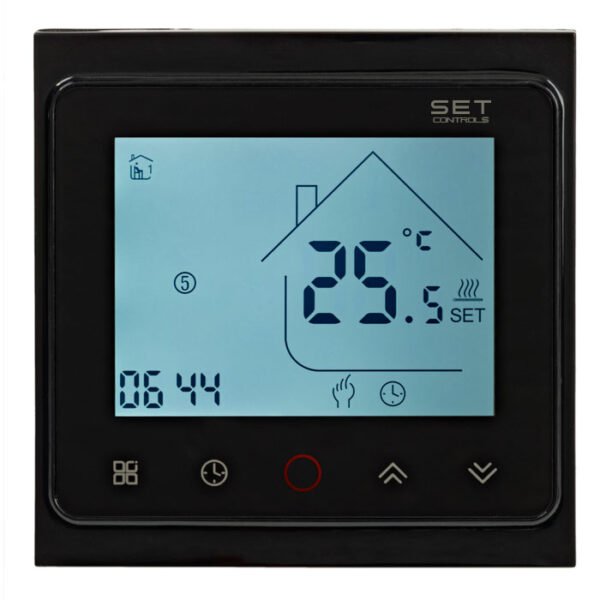 Корпус терморегулятора выполнен из специального электротехничского ABS пластика, который сохраняет свой цвет и внешний вид под воздействие солнечного света. Экран терморегулятора отображают все необходимую информацию для пользователя (время, температуру, день недели и тд.). Терморегулятор имеет функцию самодиагностики и сигнализирует о возможной неисправности.