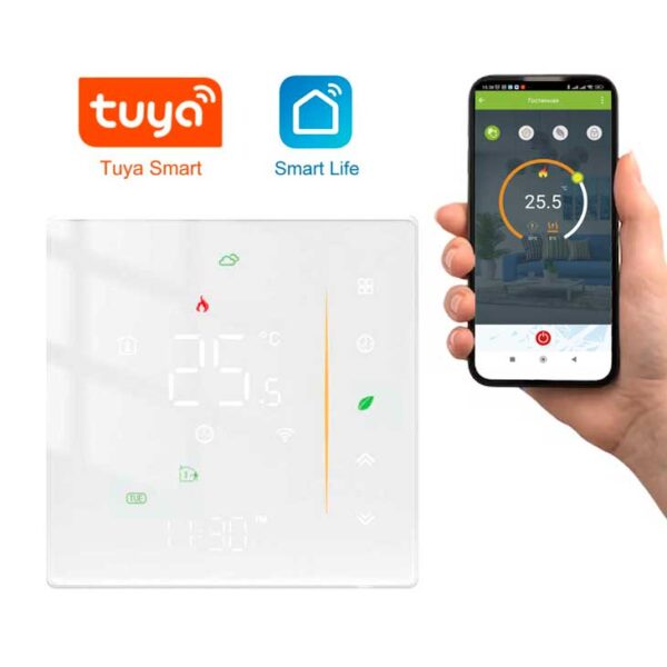 Проводной программируемый терморегулятор SET FLRF-091 WiFi White для подключения к газовому и электрическому котлу всех брендов. Терморегулятор удаленно (с любой точки планеты) управляется со смартфона через приложение Tuya Smart или Smart Life для IOS и Android.