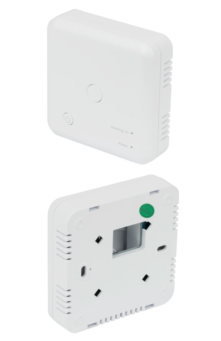 - Терморегулятор имеет встроенный датчик температуры воздуха. Он контролирует температуру в помещении. Когда необходимо включить нагрев – терморегулятор по радиоканалу передает ответный сигнал на приемник. Когда необходимая температура достигнута – терморегулятор передает сигнал приемнику выключить нагрев.