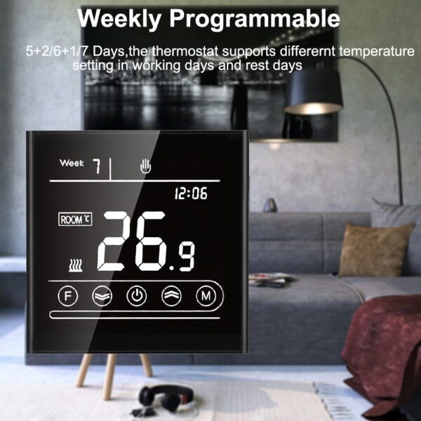 Терморегулятор для теплого пола Set WBR-716 WiFi черный Tuya Smart , программируемый терморегулятор с функцией WiFi и выносным датчиком температуры на проводе, применяется для управления электрическим теплым полом (мат, кабель, инфракрасная пленка). Наличие модуля WiFi позволяет подключить термостат через интернет шлюз к серверу и связать его с приложением, установленным в смартфон (Android или IOS). Это позволяет, удаленно контролировать температуру, вкл/выкл, изменять настройки и программировать термостат со смартфона в любом месте, где есть интернет соединение.