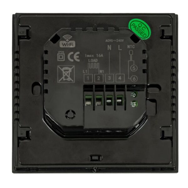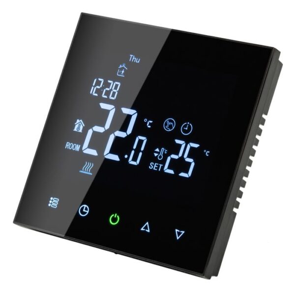 Черный терморегулятор с черным экраном Set WBR-916 WiFi Tuya Smart BB отлично смотрится в современном интерьере.