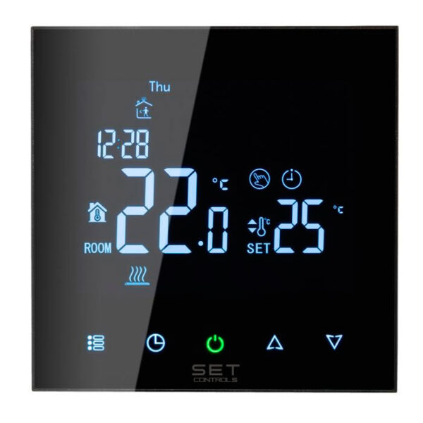Терморегулятор для теплого пола Set WBR-916 WiFi Tuya Smart BB черный, черный экран. Стильный современный дизайн, сенсорные кнопки.