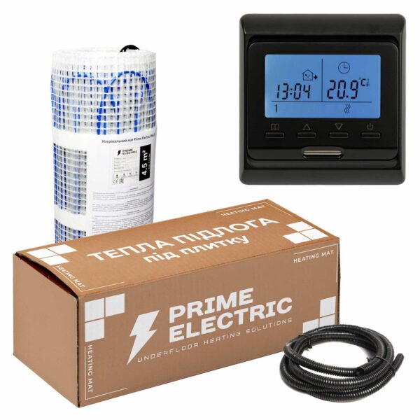 Тепла підлога Prime Electric PM-175 1,5 м.кв 263 Вт нагрівальний мат з програмованим терморегулятором чорним з двома датчиками (10175-0051)